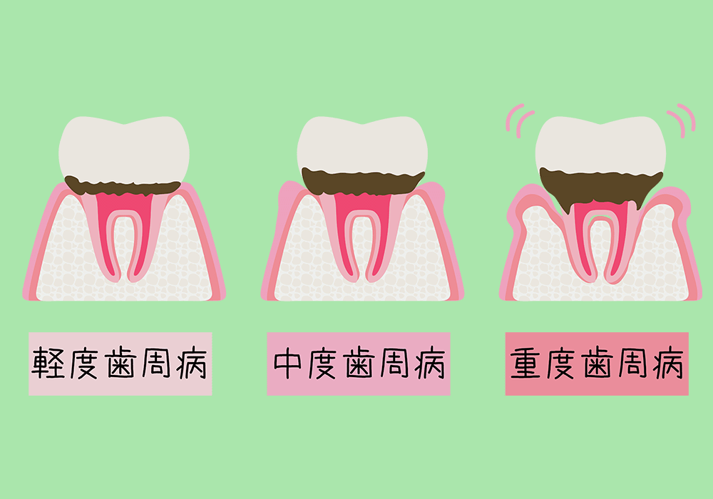 主な症状としては、歯茎の腫れや痛み、出血などがあります。進行すると、歯を支える骨(歯槽骨)が溶け、最悪の場合は歯が抜けてしまうこともあります。